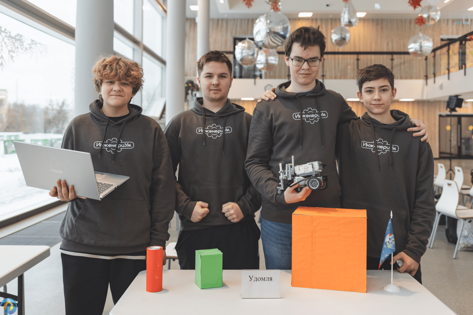 Команду города Удомли представили обучающиеся МБУ ДО ДДТ, МБОУ УГ № 3 им. О.Г. Макарова и МБОУ УСОШ № 5 с углубленным изучением отдельных предметов: Гангурян Станислав, Киселёв Игорь, Михеев Илья, Чеканов Артём и Шибанов Всеволод. Руководитель – педагог робототехники ЦЦОД «IT-куб» Сандуляк Данил Валерьевич. У команды также был наставник – молодой специалист Калининской АЭС Полухина Алёна Владимировна.