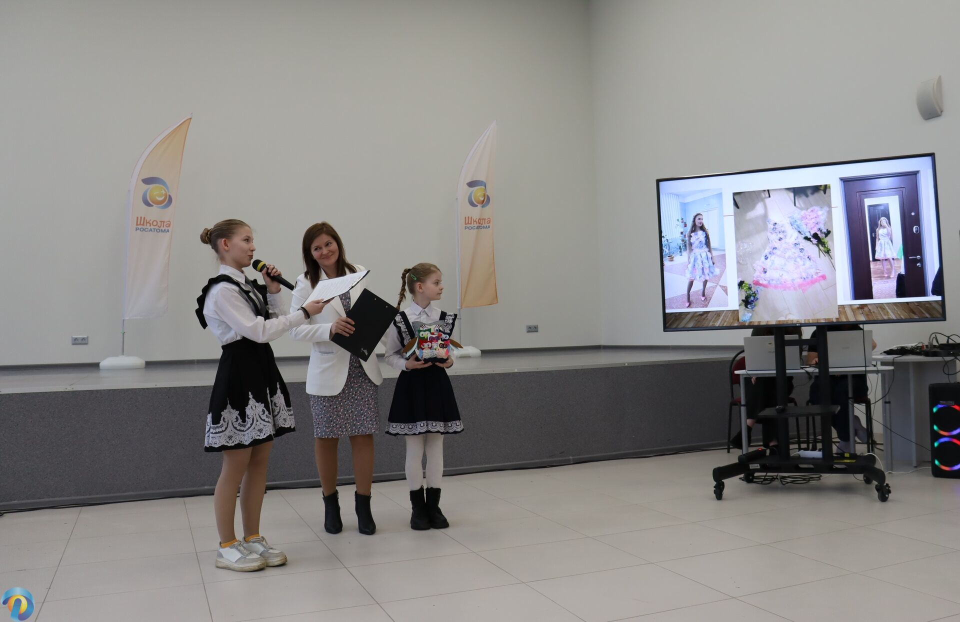 Итоги Фестиваля торжественно объявила его ведущая — Филиппова Ирина Юрьевна, директор Дома детского творчества и муниципальный координатор проекта «Школа Росатома».
