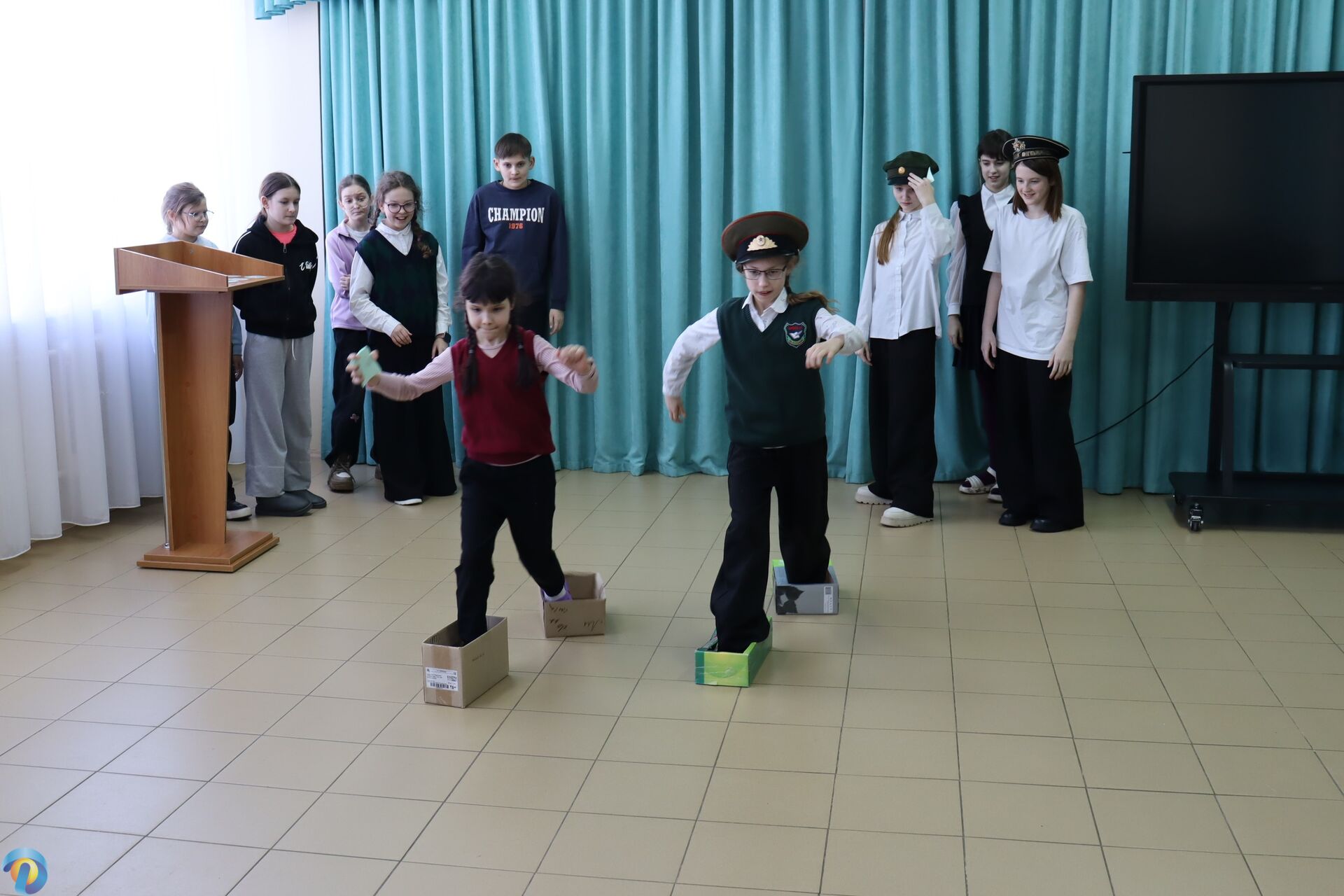 Викторина не ограничилась интеллектуальными испытаниями: в программу вошли и активные игры. Юные стратеги с энтузиазмом строили «неприступные крепости», а затем штурмовали укрепления противника, используя «боевые» комки из бумаги. Зал наполнился смехом и азартом - дети с головой погружались в каждое новое увлекательное задание.