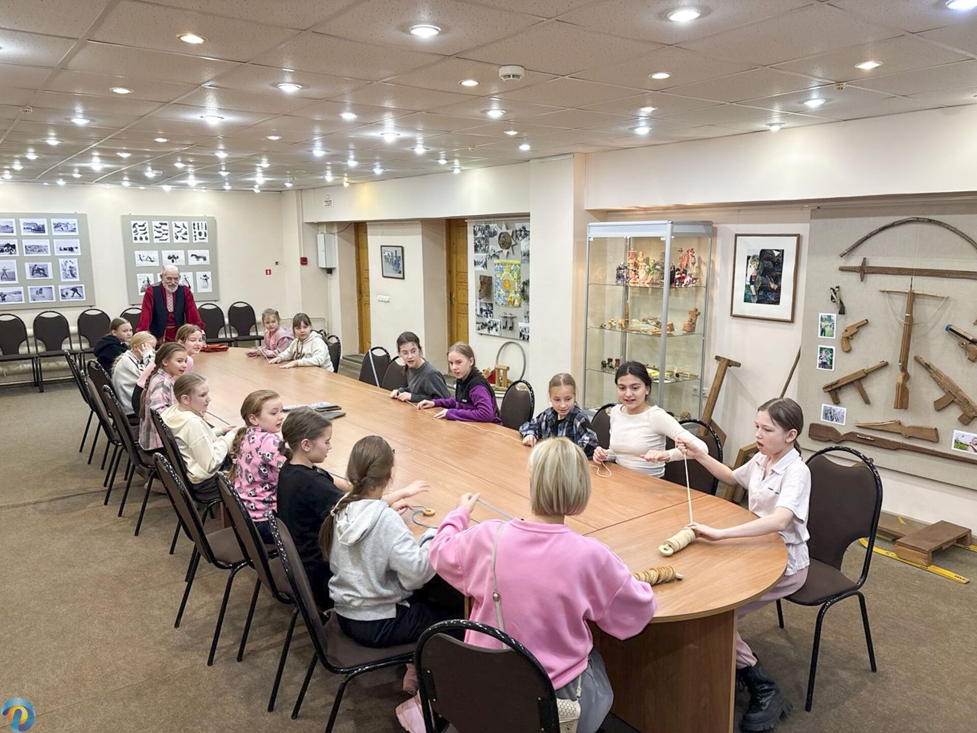 Кроме того, девочки посетили тематическую экскурсию, где познакомились с историей появления первых игрушек и музыкальных инструментов на Руси. Ребята не только услышали их звучание, но и попробовали себя в гончарном деле - слепили статуэтку кошечки.